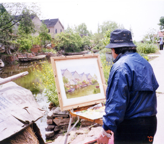 (林智信於大陸「周庄」寫生)